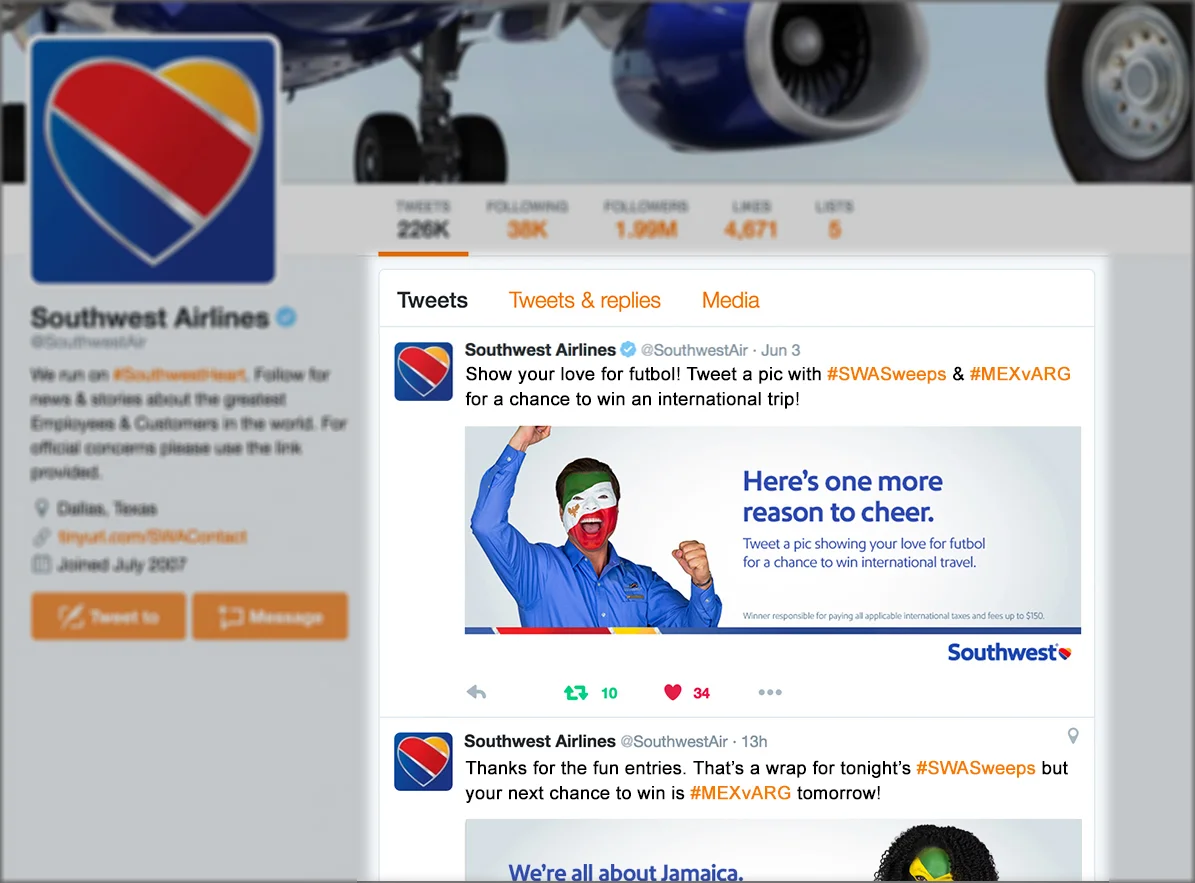 Southwest always uses real employees in their ads. We reached out to ones born in some of the countries playing in Copa America, and we integrated them into our ads on Copa America web properties and at the stadiums.